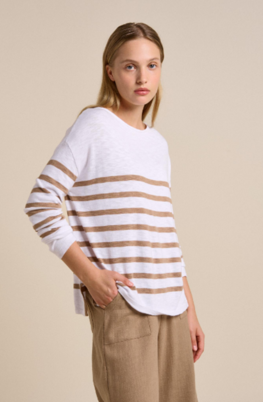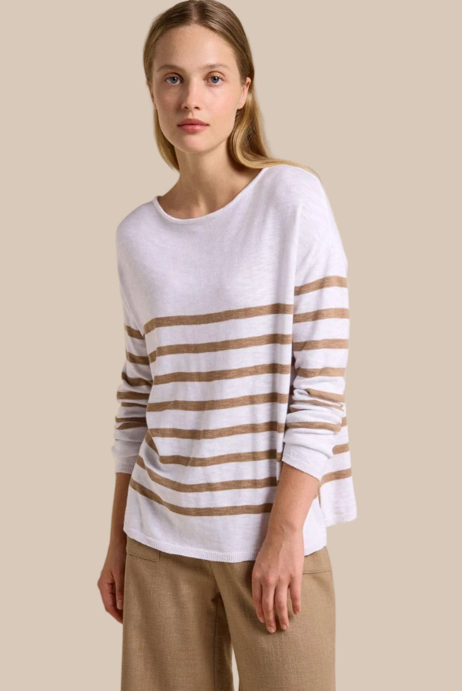 Foxwood Farrah Stripe Long Sleeve Woodrose/White clothingeveryday-topsfoxwoodnewtops