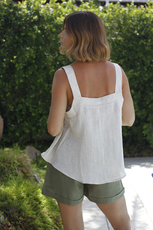 This classic linen top is the perfect addition to your wardrobe. Made with high-quality fabric, it offers a timeless look and comfortable fit. Its versatility makes it suitable for any occasion, while its lightweight material makes it ideal for warmer weather. Elevate your style with the Haven Santorini Tank Sand.