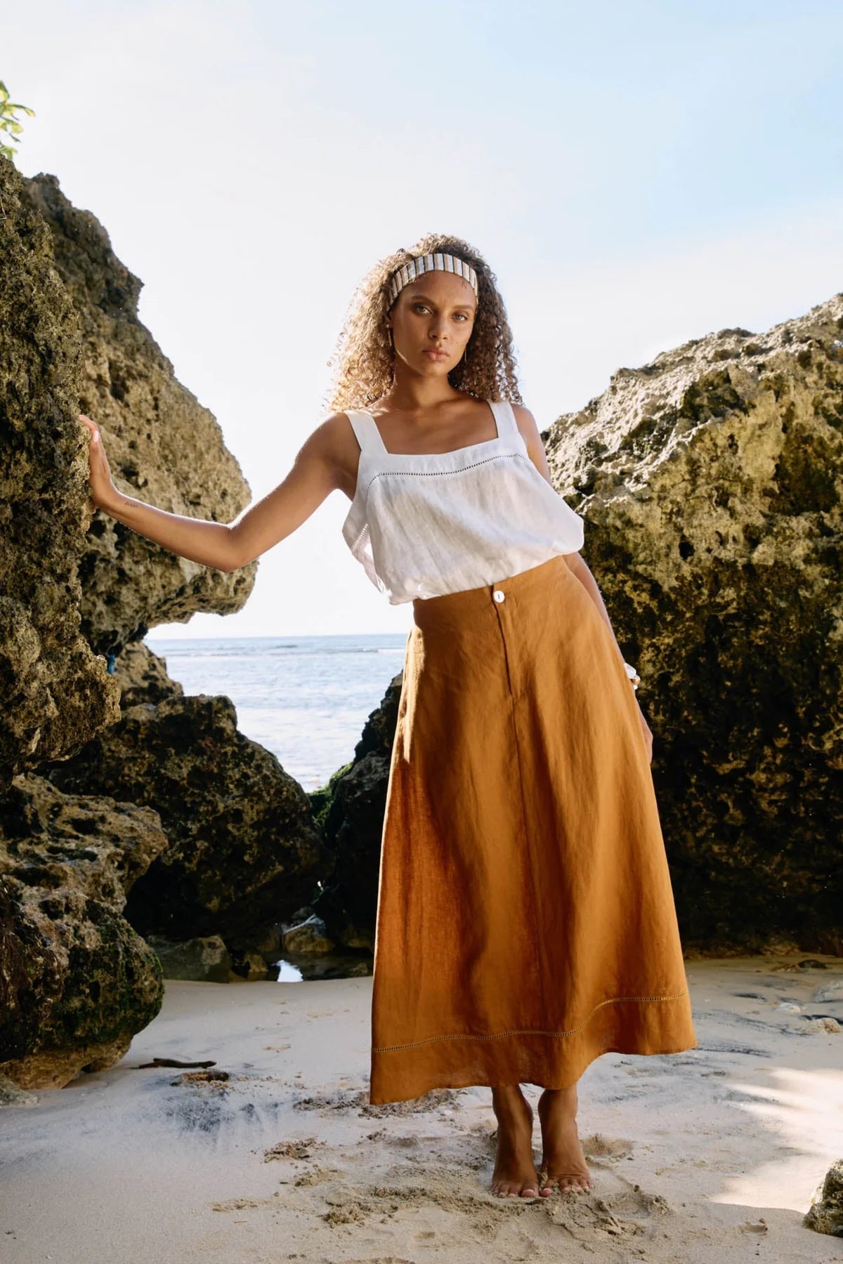 Breeze through your day in the Eb & Ive Miramar Tank White, a light and airy linen top that keeps you cool and effortlessly stylish. Its crisp white shade pairs perfectly with anything, making it your go-to for sunny adventures or casual hangouts. Embrace comfort with a playful twist!