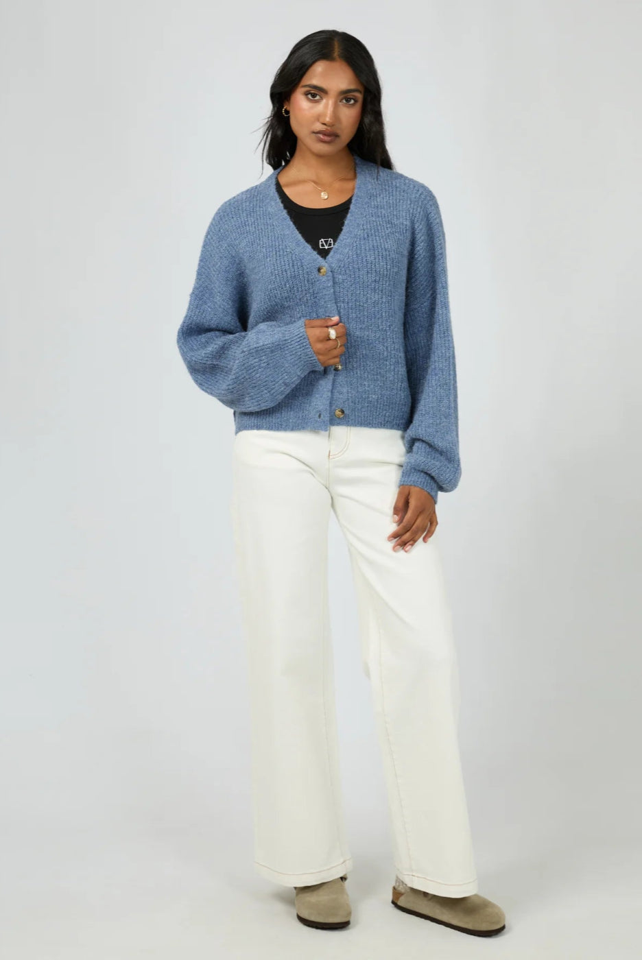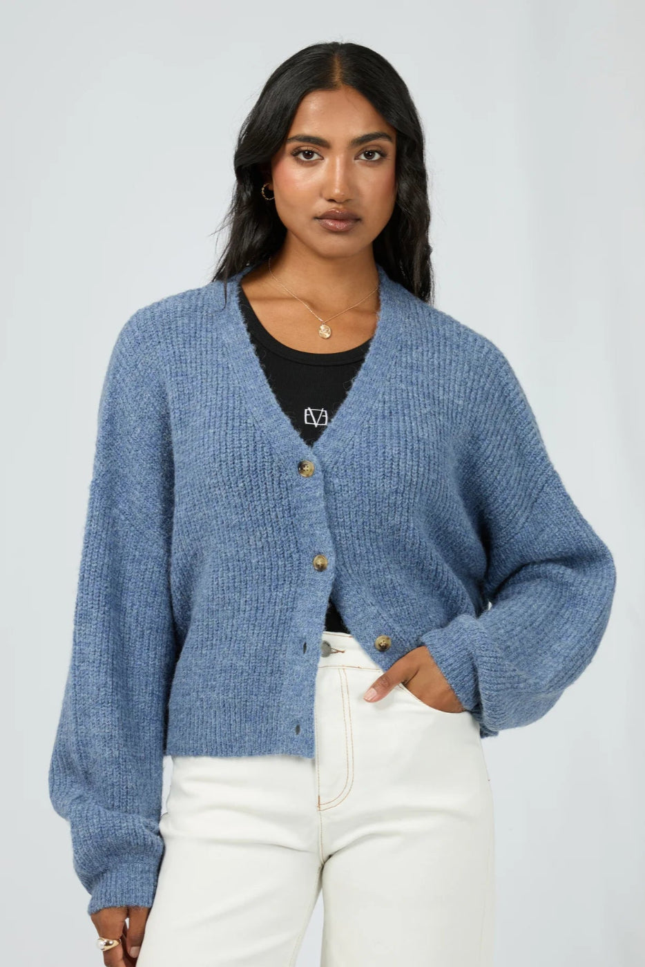 Rhythm Cabelled Vintage Zip Knit Dusty Blue