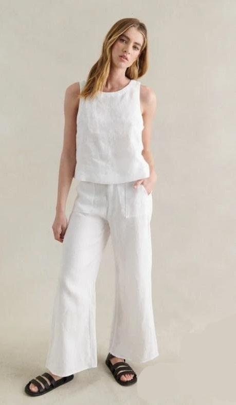 Elevate your summer wardrobe with Little Lies Jude Linen Top in classic white. Made from premium linen, this top pairs perfectly with our linen pants or shorts to create a luxurious set. Embrace sophisticated style and effortlessly elevate your look with this exclusive piece.