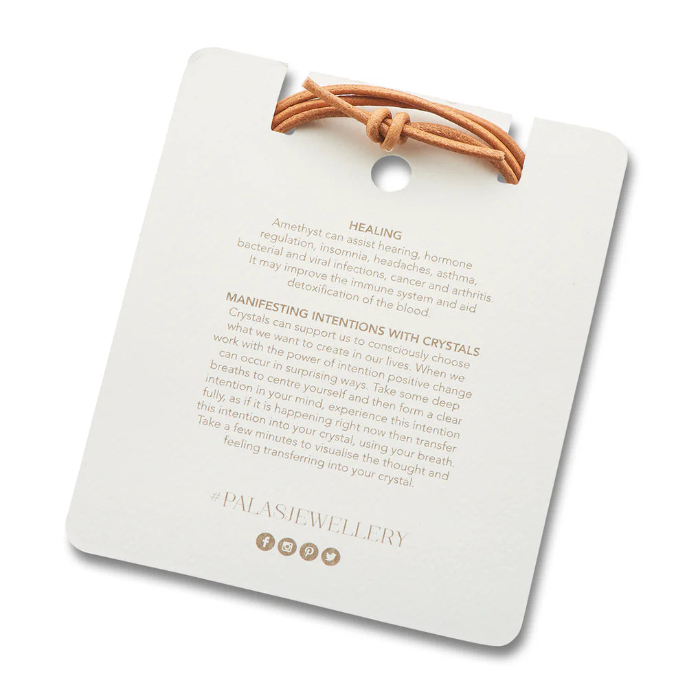 Meaning: protection Amethyst is believed to help with physical and emotional protection and mental balance. It is also believed to support with negotiating skills, decision making, wealth, business success, moving forward in life and coping with responsibility and change.