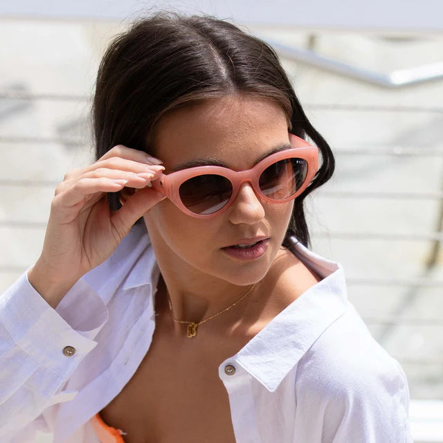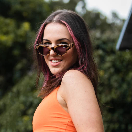 Ready to strike a pose? Hibiscus is. Channelling retro glam with its thick, all-black frame made from 100% post comsumer waste. These shades won’t shy away from the limelight. And with 100% UV protection in its smoke lenses, you won't need to either. And a sustainable protective case and cleaning cloth.