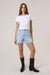 Introducing our popular Koko Short now available in Ash Blue! These mid-thigh cut-off shorts are inspired by the 90's and offer a trendy and versatile style. Whether you're aiming for a smart or casual look, the Koko Short in Black Rinse is the perfect choice. Dress them up or down to create fashionable outfits for any occasion. Enjoy the comfort and fashion-forward appeal of these stylish shorts!